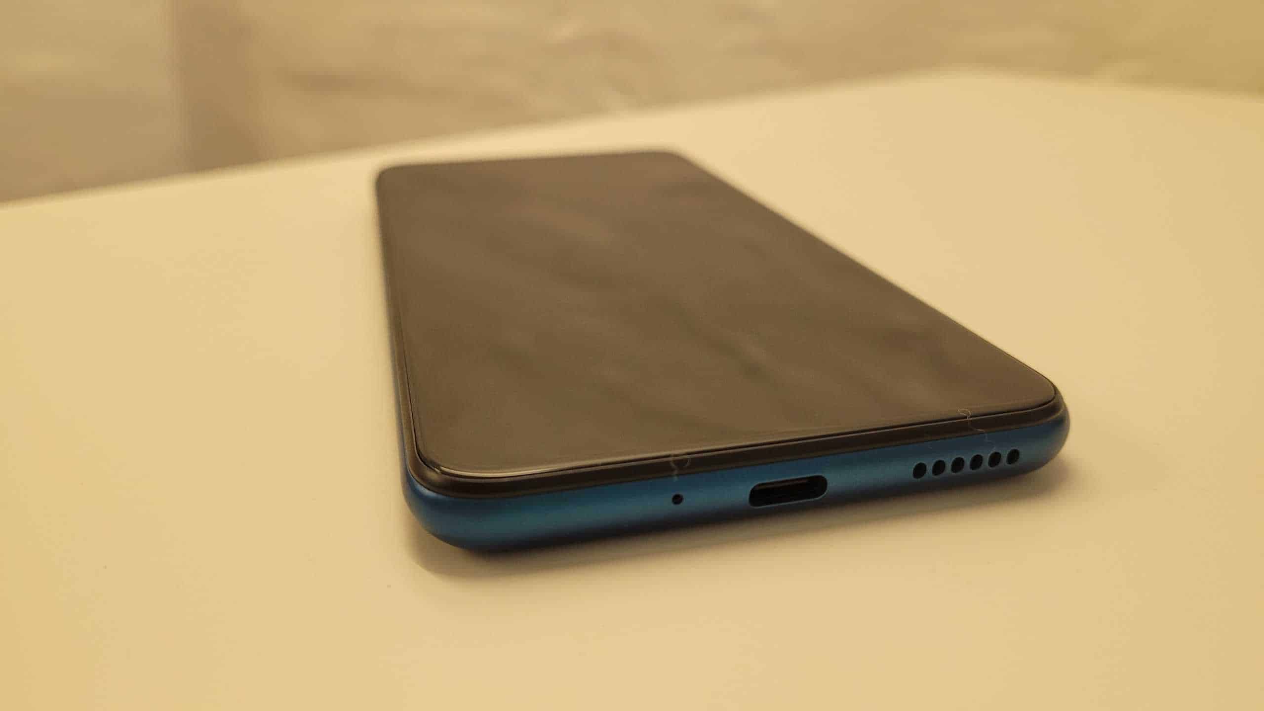 An der linken Gehäuseseite befindet sich der SIM Kartenschacht. An der oberen Gehäuseseite der 3,5 mm Kopfhöreranschluss. Sehr schön, dass so ein Feature mit verbaut wurde. An der rechten Gehäuseseite befinden sich die Lautstärken Wippe, der Ein/Ausschalter so wie ein Button, um den Googleassistent zu starten. Dieser ist geriffelt. Dadurch sehr gut zu ertasten. Das Gerät ist leider nicht wasserdicht und auch nicht gegen Spritzwasser geschützt. Auch wenn das Gerät komplett aus Kunststoff gefertigt ist es fühlt sich in keinster Art und Weise billig an. Es wirkt sehr stabil und verwindungssteif. Es lässt sich im unteren Drittel der Rückseite minimal eindrücken. Der Fingerabdrucksensor auf der Rückseite ist okay zu erreichen und funktioniert gut.