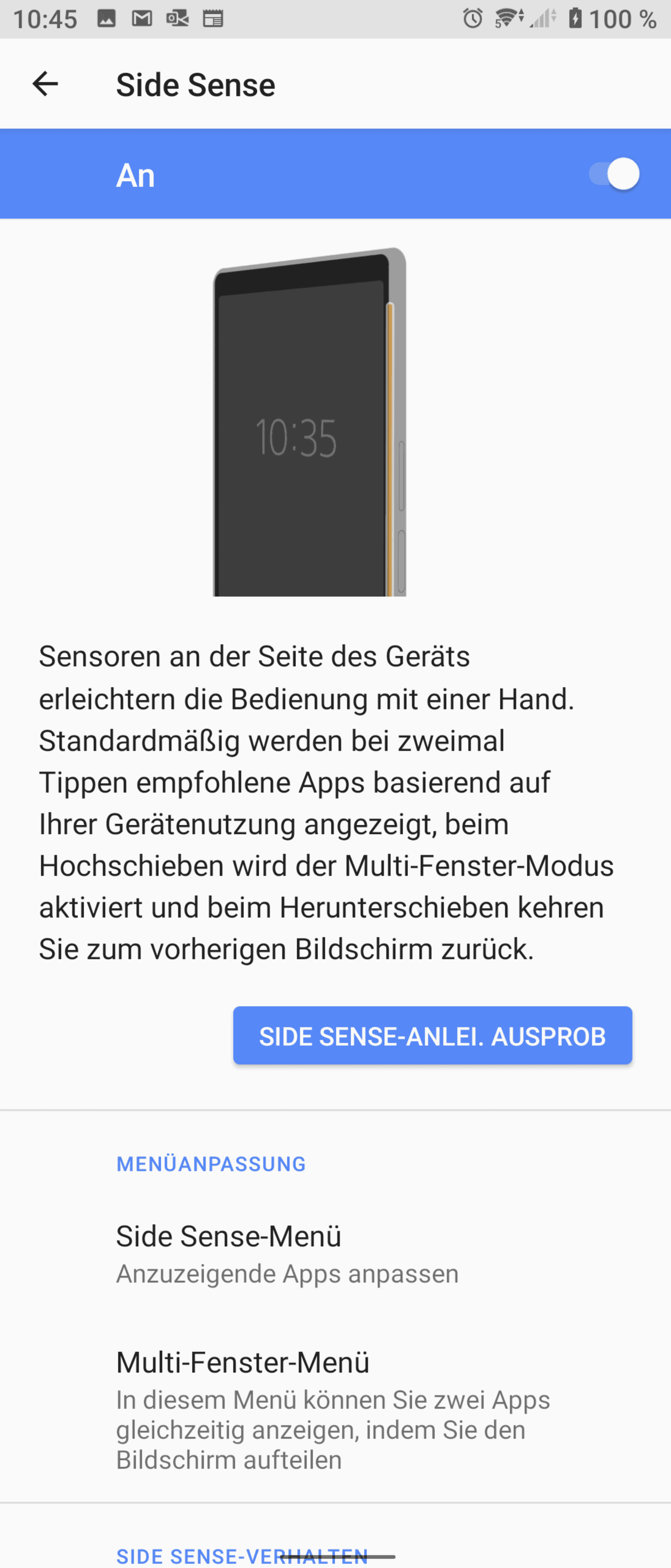 Kommen wir zu etwas was mir wirklich gut gefällt und ich es auch noch keinem Gerät so ausgiebig genutzt habe, wie auf dem Sony Xperia 1 II. die Splitscreen Fähigkeit. Aufgrund der Länge des Gerätes bietet es sich an mit zwei Fenstern zu arbeiten. Ich kann z.b. oben ein YouTube Video schauen und unten ein Text lesen. Man kann oben meine Excel-Liste geöffnet haben und unten ein Word-Dokument. Oder einen Testbericht lesen und unten das Amazon Fenster geöffnet haben. Dieses funktioniert so genial und intuitiv, wie ich es bisher bei noch keinem Gerät erlebt habe. Man gelangt in diese Funktion mittels Side Sense oder über die App Multi-Fenster.