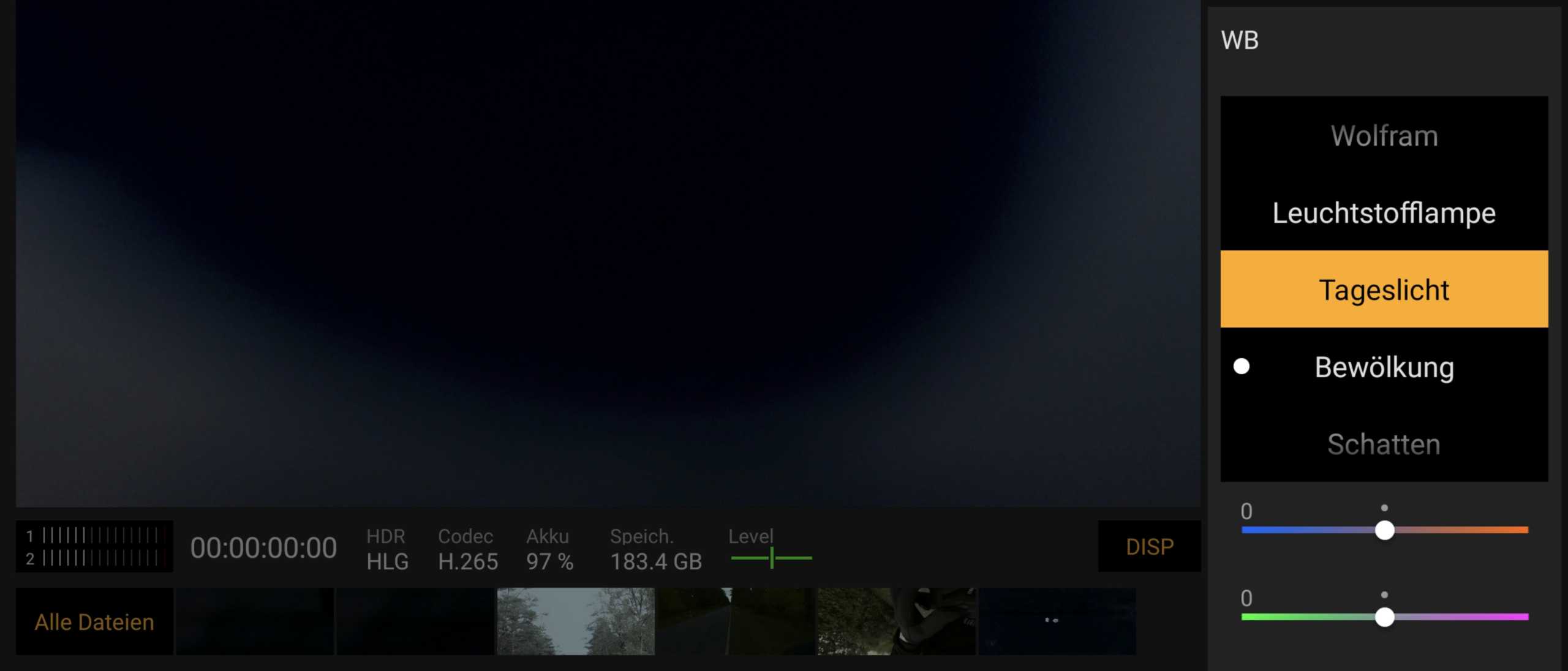 Wenn die Fotokamera schon völlig wahnsinnig ist, so geht die Videokamera noch einen Schritt weiter. Auch hier gibt es eine sogenannte Pro App. Startet man diese, landet man in einer, für ein Smartphone unglaubliche Kamera. Wie bei der Fotokamera ist auch hier alles anpassbar. Es sind sogar schon verschiedene Color Gradings eingestellt. Sei es, opak, hell, warm, kräftig, kühl, weich, weiches monochrom. Man kann das Objektiv wählen ob 70 mm, 24 mm oder 16 mm. Die Umgebung wählen, bewölkt, Tageslicht, Leuchtstofflampe und so weiter.